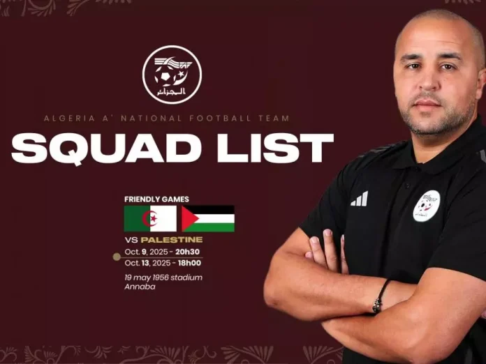 Le sélectionneur de l’équipe nationale A’, Madjid Bougherra, a fait appel à vingt-cinq joueurs pour un stage qui aura lieu du 6 au 14 octobre à Annaba. Ce rassemblement précède deux matchs amicaux contre la Palestine, organisés dans le cadre de la préparation à la Coupe arabe Fifa 2025, prévue au Qatar du 1er au 18 décembre.