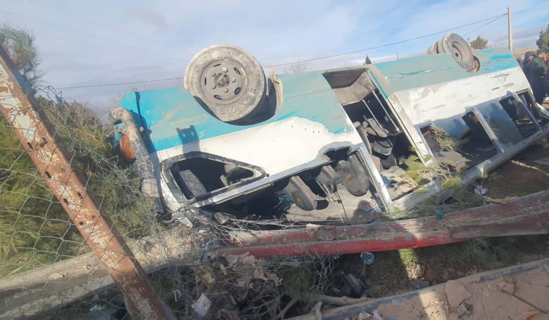 Selon la Protection civile, « Nos services sont intervenus à 09h50 à la suite du dérapage et du renversement d’un bus sur la RN 10 dans la commune de Houihbat ». Le véhicule assurait la ligne Bouchebka – Tébessa lorsqu’il s’est retrouvé sur le toit. Les images partagées par les secours montrent un bus fortement endommagé. Les blessés ont été transportés vers l’hôpital, avec l’appui de cinq ambulances et d’un véhicule d’intervention.
