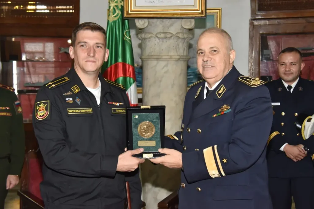 Au cours de cette escale, « le chef de la mission et la délégation qui l’accompagnait ont effectué une visite de courtoisie auprès du Commandant de la Façade maritime centre/1ère Région militaire, au siège de la Base navale d’Alger/1ère RM. Les échanges ont porté sur les moyens de renforcer la coopération bilatérale et de promouvoir le partage d’expertise entre les marines algérienne et russe », ajoute le communiqué.